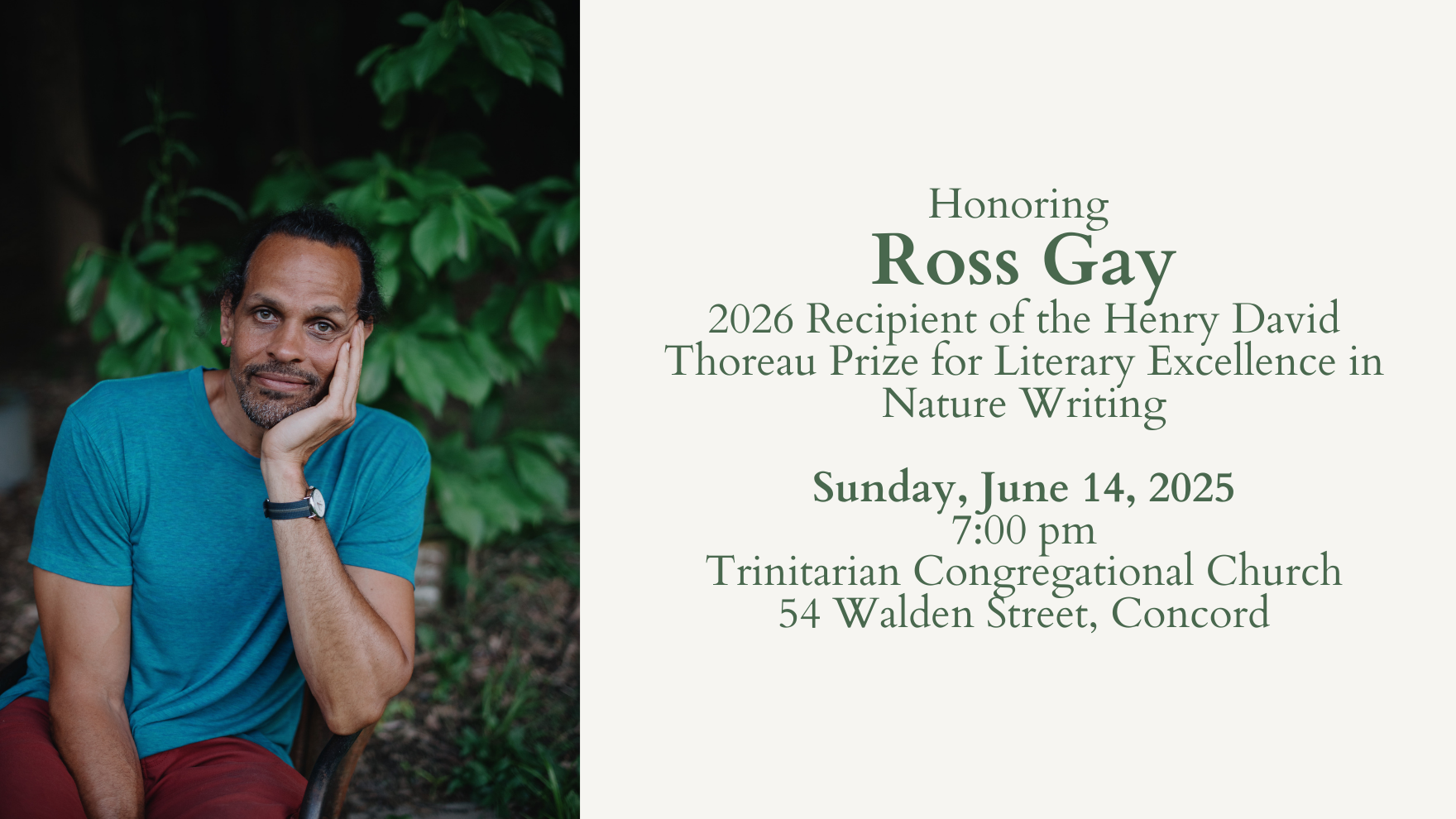 Register to Attend   The Thoreau Alliance announces that Ross Gay is the winner of the 2026 Henry David Thoreau Prize for Literary Excellence in Nature Writing. On June 14, […]